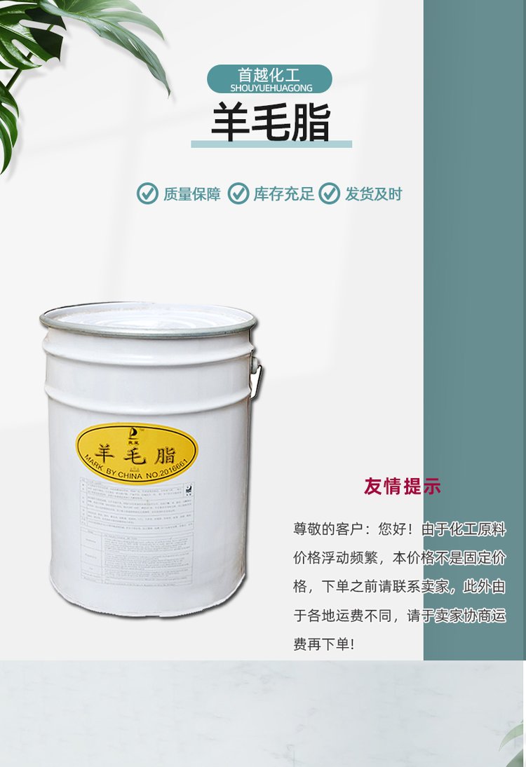 首越无水羊毛脂油溶性水溶性化妆品级防锈保湿润滑护理剂膏状